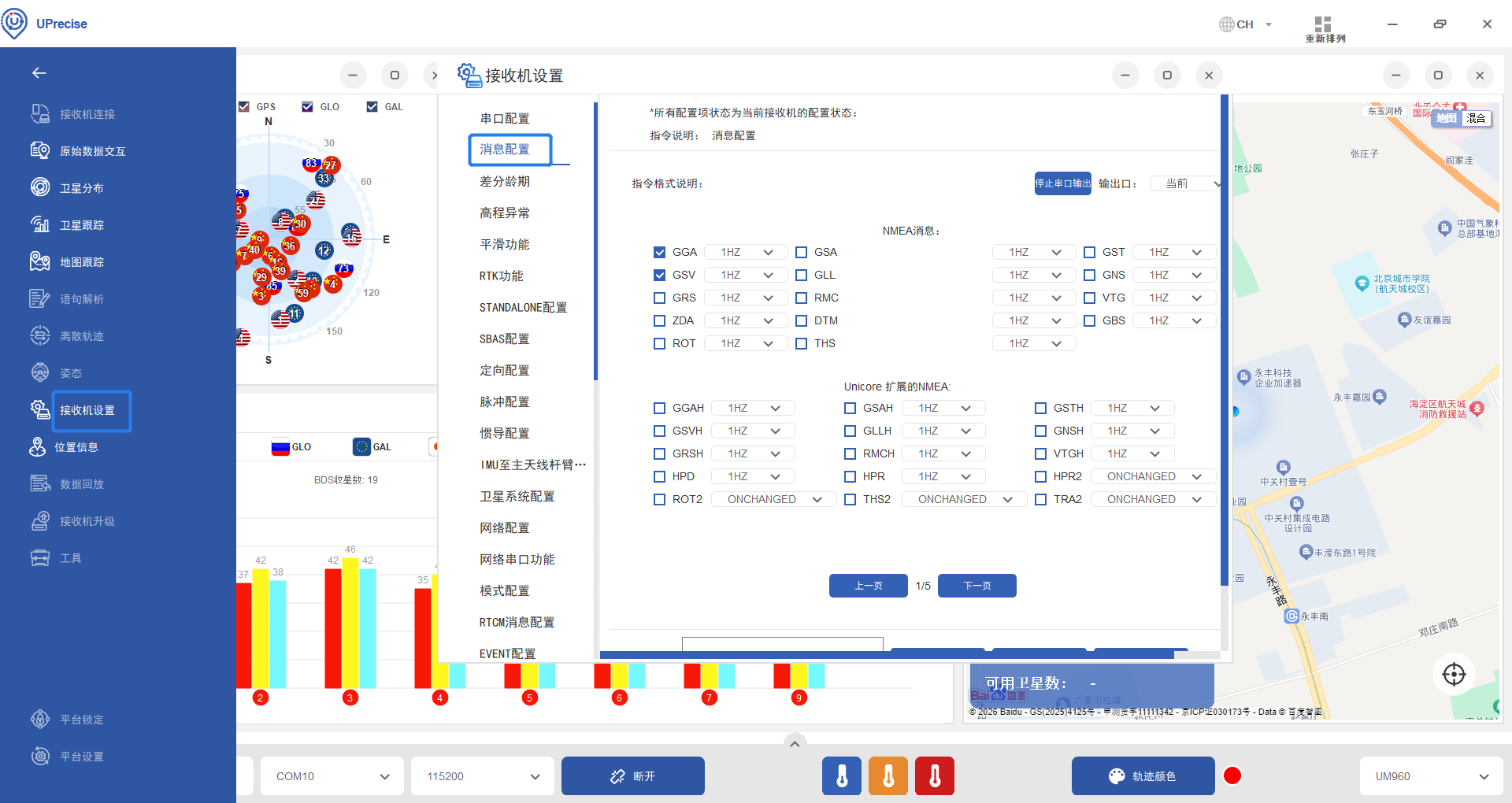 为保证 卫星分布、卫星跟踪 窗口正常显示,以及定位功能正常使用,建议配置接收机输出 NMEA GGA、GSA、GSV、GST 和 RMC 消息。